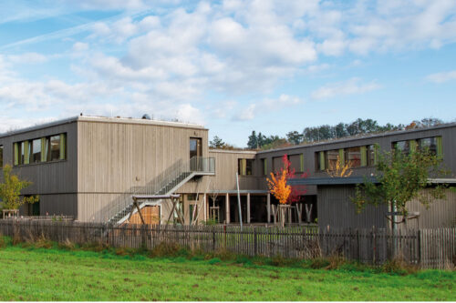 Montessorieschule Rotthalmünster Neubau Montessorieschule Ausführung 2022 Modernes, zeitloses Schulgebäude Bau aus massivem Brettsperrholz, Fassadenverkleidung Außenbereich Öffentlicher Bau