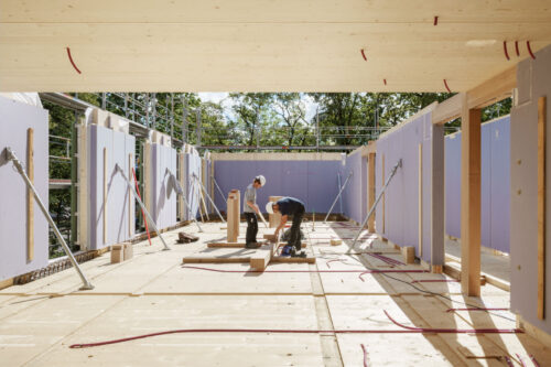 Studentenwohnheim Schwere-Reiter-Straße München Neubau eines Studentenwohnheims Ausführung 2022 – 2024 Studentenwohnheim mit 241 Wohneinheiten 5- und 8-geschossiger Holzbau Öffentlicher Bau