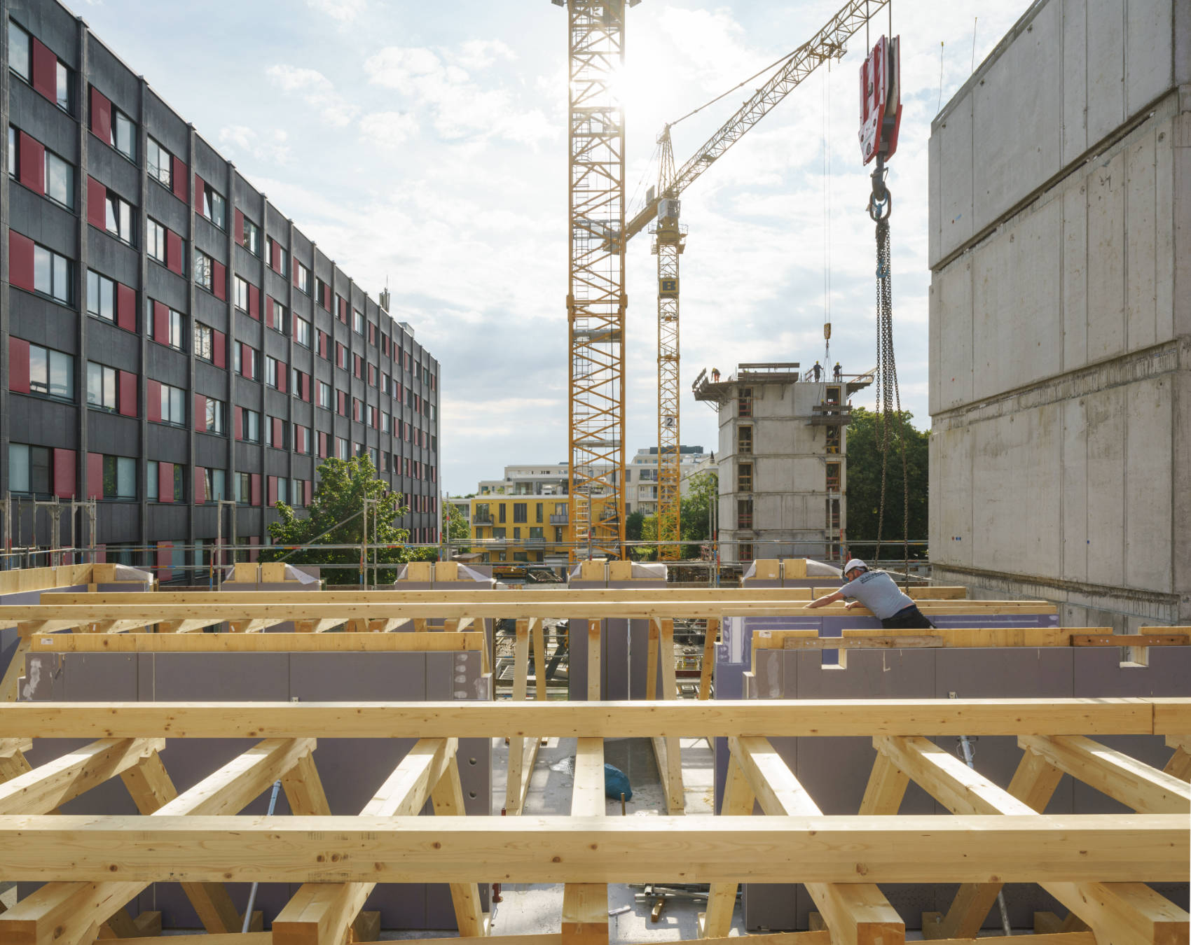 Studentenwohnheim Schwere-Reiter-Straße München Neubau eines Studentenwohnheims Ausführung 2022 – 2024 Studentenwohnheim mit 241 Wohneinheiten 5- und 8-geschossiger Holzbau Öffentlicher Bau Project navigationZurückPrevious project:Schloss WörthNächstesNext project:SAR Knext